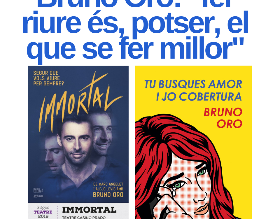 Actor, imitador, cantant i també escriptor. Bruno Oro serà diumenge a Sitges per representar, al teatre del Prado, Immortal, una comèdia futurista que reflexiona sobre la vida eterna dirigida per Marc Angelet i de la que n’ha escrit el guió juntament amb Alejo Levis. En acabar l’obra l’actor signarà exemplars de la seva novel·la “Tu busques amor i jo cobertura”, el seu debut en ficció que va escriure fa tres […]