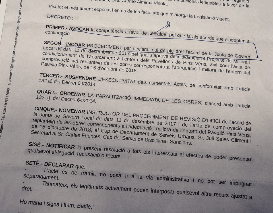 El portaveu d’ERC i regidor d’urbanisme, espais naturals, sostenibilitat i governació, Eduard Terrado, garanteix que l’aparcament situat al costat dels pavellons de Pins Vens es podia fer en aquest terreny de zona verda sense vulnerar cap normativa, i que el decret d’alcaldia que declarava nul de ple dret l’aprovació de les obres de millora d’aquesta zona es refereix a un projecte que després va ser modificat per adaptar-lo als requeriments […]