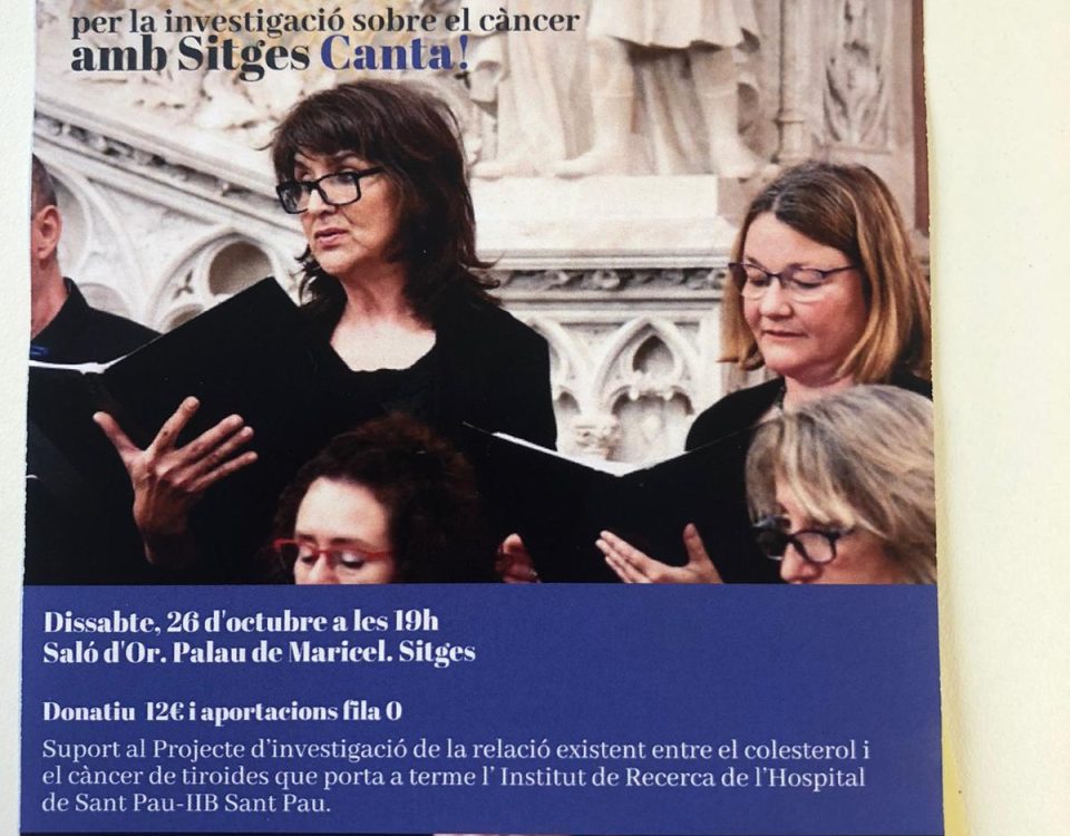 La coral Sitges Canta participarà altruistament aquest dissabte en un concert solidari al Palau de Maricel, en el marc del Dia de l’Artista, per recollir fons per a la investigació que l’hospital de Sant Pau fa per estudiar la relació entre el colesterol dolent i el càncer de tiroides. N’hem parlat amb el director dels Museus de Sitges, Pere Izquierdo, i amb la investigadora de Sant Pau Giovana Revilla. Escolteu-los […]