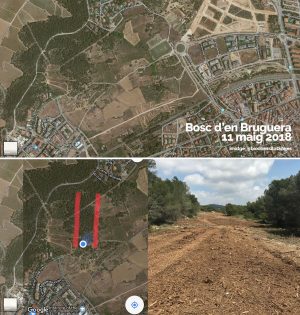 El desenvolupament de la urbanització de La Plana i Santa Bàrbara segueix endavant. Des de Biodiversitat Sitges ens envien unes imatges i un clip de video per a denunciar l’actuació que s’ha fet al bosc d’en Bruguera, i que ha anorreat part de la pineda existent.