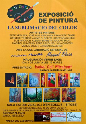 Amb la felicitat d’inaugurar nova exposició i el disgust de no poder utilitzar el primer pis de l’estudi Vidal per a desenvolupar les seves activitats. Entre aquestes dues sensacions es troben els membres del col·lectiu de pintors 9 gats de Sitges, que presenten la mostra La sublimació del color a partir de divendres a la sala d’exposicions de l’estudi Vidal. Jose Luís Redondo i Pepe Nebleza ens expliquen els detalls de la mostra, que s’inaugurarà oficialment aquest dissabte a les 7 del vespre, i el desencontre que viuen amb el Cercle Artístic de Sitges. Segons Redondo i Nebleza, tant el president com l’assemblea del centre s’han pronunciat obertament en contra de la presència dels 9 gats de Sitges al primer pis de l’estudi Vidal, quelcom que topa amb el que permetria un espai que és de titularitat pública. El col·lectiu admet que tot i que la sol·licitud per a utilitzar el primer pis es va exposar fa set mesos a la regidora de cultura, de moment no s’hi ha trobat solució.
