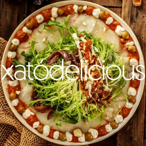 Atenció ortodoxos! No hi ha tonyina en aquest xató. A canvi, a més de la salsa tradicional, Marta Sanahuja us proposa afegir-hi una salsa d’anxoves i l’amanida sobre una base de bacalla tallat en làmines fines a la manera de carpaccio. Per tant, si us atreviu amb una reversió només us podem dir que us agradarà. La Marta ens l’explica i podeu trobar altres receptes al seu blog Delicious Martha.