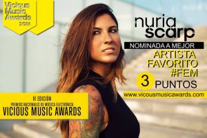 La lluita serà renyida. Hi ha 41 nominades, i una d’elles és la DJ sitgetana Núria Scarp. El grup de comunicació Vicious Media celebrarà, el proper 25 de gener, la gala dels premis nacionals de música electrònica Vicious Music Awards, que premien a un seguit de professionals, ja escollits previament arran de la seva trajectòria, tenint en compte el vot popular i el d’un jurat de professionals del sector. Amb la Núria parlem d’aquesta nova fita dins de la seva carrera professional, en un món on fer-se un lloc no és gens fàcil. Fins el proper diumenge 8 de gener podeu votar la Núria a la pàgina dels finalistes als premis!