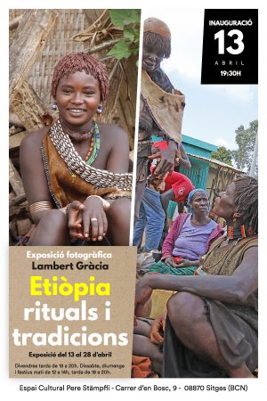 Dissabte al vespre l’Espai Cultural Pere Stampfli inaugurarà l’exposició fotogràfica Etiòpia, rituals i tradicions de Lambert Gràcia. Una cinquantena de fotografies mostraran cultura i costums de diverses ètnies del sud d’Etiòpia que Gràcia va visitar recentement, entre elles alguns de molt impactants com és el cas dels plats labials de l’ètnia Mursi o el ritual de l’ètnia Hammer que inclou brous i violència explícita, una imatge dura de veure i que Lambert Gràcia va poder retratar i ara ens ensenya amb aquesta exposició.