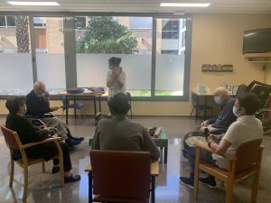 El servei es duia a terme a la Unitat de Cures Pal·liatives de l’Hospital de Sant Camil des del 2014 però la pandèmia va obligar a aturar-lo, ara ha tornat i se l’ha inclòs dins el programa d’activitats de la Residència. Durant 45minuts i en grups de cinc persones els residents assisteixen a sessions amb una musicoterapeuta que els acompanya i els estimula a través de la música i de ritmes fets amb instruments musicals elementals. El servei que es du a terme gràcies al suport d’Altima ajuda els residents a expressar-se, comunicar-se i compartir a través de la música i en cap cas pretén curar sinó acompanyar. Ens ho explica la musicoterapeuta Rochsane Taghikhani en una de les sessions.