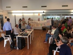 El projecte de construcció d’unes pistes de pàdel a l’espai de terra de la plaça pública davant la Piscina Municipal de Sitges va ser obertament qüestionat per veïns del Poble Sec i per pares i mares de l’escola Miquel Utrillo, en la sessió informativa per explicar aquesta solució convocada per la concessionària de la instal·lació i l’Ajuntament. L’actuació està emarcada en el pla de viabilitat econòmica de l’equipament, aprovat per un ple extraordinari el desembre de 2015, però els veïns varen lamentar no haver tingut coneixement del mateix fins aquesta setmana, quan ja està concedida la llicència d’obres. El regidor d’esports, Eduard Terrado, quer va parlar en nom de l’Ajuntament donada l’absència de l’alcalde, i l’administrador de SEAE Sitges, Jordi Cabanes, es van esforçar per deixar clar que sense les pistes de pàdel no serà possible la continuitat de la instal.lació, de la que depenen trenta llocs de treball, i que la seva fallida provocaria un forat d’uns cinc milions d’euros que hauria d’assumir l’Ajuntament. Per la seva banda, els veïns es varen queixar de la gestió que ha portat a la piscina a aquest punt, de la manca d’informació al barri i als pares i mares de l’escola, i de la desaparició d’un espai públic molt utilitzat pels infants. Finalment, el regidor i l’empresa es varen comprometre a no donar cap pas més fins haver-se reunit amb els veïns per mirar de trobar una solució que pugui satisfer tothom.