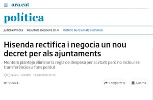 Poc ha durat l’alegria del titular. L’Ajuntament de Sitges ja ha utilitzat bona part dels superàvits del 2018 i el 2019. La regidora Carme Almirall espera l’eliminació de la regla de despesa pel 2021 i el 2022 i la derogació de la ‘Llei Montoro’.